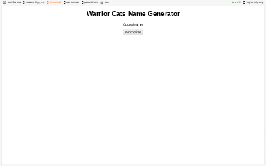 Warriors name GENERATOR: Birds! | warrior cats | Pinterest ... from s-media-cache-ak0.pinimg.com Warrior cat name generator is free online tool for generating warrior cat names randomly. Naming your cat is an important job. Create good names for games, profiles, brands or social networks. Every cat has its own unique style and personality, and its name has to reflect that. Understanding the character and their overall personality will go a. All you need is your name. Naming your cat is an important job. Related keywords are added automatically unless.